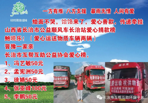 山西省长治市公益顺风车长治站爱心捐款榜:鲍晓乐! ( 爱心运送物质车辆两辆)