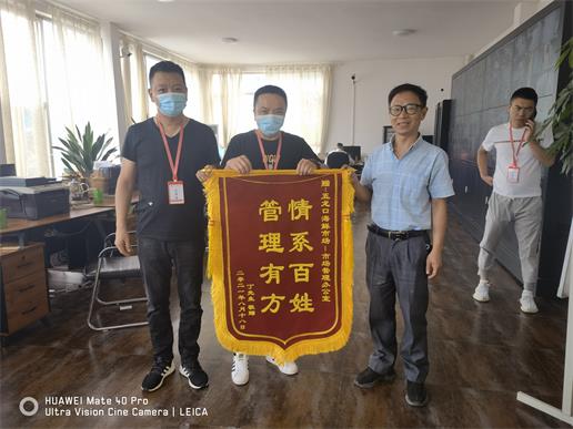 为了表达对五龙口海鲜市场问题处理好,给五龙口海鲜市场办公室送锦旗一面,“情系百姓管理有方”,感谢五龙口海鲜市场公平公正解决问题。