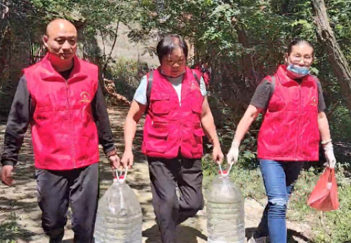 长治善泽公益协会崔新宏和志愿者给壶关岭上村孤寡老人送纯净水 崔新宏 8月31日