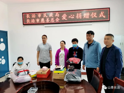 9月7日上午,长治市民政局、长治市慈善总会在福利院举办爱心捐赠仪式,为党秦和王金郁送上了羽绒服、春秋外套以及贴身衣服、行李箱等生活物品。