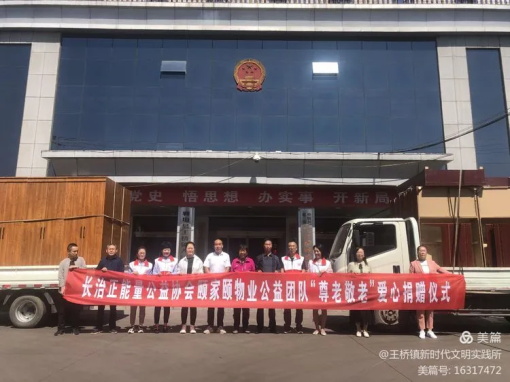 “尊老敬老,大爱无疆”。2021年9月9日,长治正能量公益协会会长罗春江、常务副会长李宏兵和正能量公益协会颐家颐物业公益团队负责人冯芳芳一行五人,带着对王桥镇中心敬老院特困老人满满的爱心来到王桥镇,举行“尊老敬老”爱心捐赠仪式,将十五套床,柜等物资捐给王桥中心敬老院。