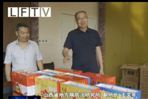 爱心企业临汾市乡宁金尧园食品厂,厂长刘启堂带领志愿者,将自己单位生产的150份特色月饼赠送给山西地方病防治研究所。