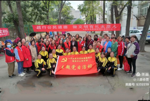 践行公民道德 做文明有礼太原人——公民道德宣传日活动。2021年9月23日上午九点,秋雨绵绵,太原市老龄健康事业服务中心主任于兰,带领服务中心的百名志愿者们:下基层,办实事,传播党的好政策,在桃园二社区组织了:“践行公民道德,做文明有礼太原人”主题活动日。