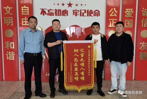 清徐温南社好男儿!义务防汛第一线!“灾害无情人有情,助人为乐显真情”,10月6日晚,温南社村民温始建自发带队前往上闫村防汛救灾,紧急支援长臂挖机一台,拖车一台,并于次日清早再次前往救援。为表谢意,上闫村党总支书记成俊飞代表全体村民为该同志及其队员送上锦旗一枚。