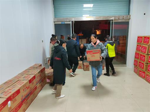 文水县妇联组织爱心帮扶志愿者们冒着寒风卸载捐赠物资 赵晓庆 10月19日