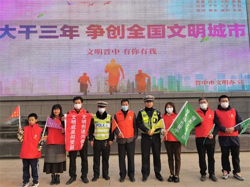 晋中市志愿者开展“创建全国文明城市.志愿者在行动” 之 “文明安全出行”志愿服务活动。晋中市今年创建全国文明城市以来,各政府机关单位以及社会各界的志愿者秉承“奉献、友爱、互助、进步”的理念,积极在各行各业各个领域为我市创建全国文明城市添砖加瓦,用实际行动诠释“奉献、友爱、互助、进步”的志愿者精神。