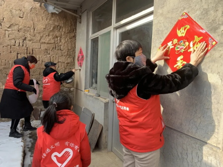3.心系军烈属,温暖送家中!忻府区西张镇岩峰村军烈士家属,烈士刘成龙在参加对越自卫反击战中不幸牺牲,父亲已下逝多年,现家中只有近80岁的老母亲和先天残疾的弟弟相依为命,是我们秀容公益中心一直持续关爱的对象 ,临年了,我们的志愿者一直牵挂着他们,再次驱车20公里来到禹王洞脚下看望行动不便的烈士老母亲和先天重度残疾的弟弟,大家怀着炽热的心,一进院子,我们放下带来的慰问品,打扫院子擦玻璃,贴春联窗花,嘘寒问暖拉家常,让他们感受到了浓浓的节日氛围。