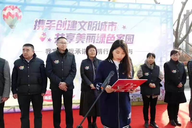 区委宣传部副部长、文明办主任白丽花在启动仪式上宣读《烟头纸屑不落地 晋源形象更美丽》倡议书,倡议广大青年朋友从小事做起,从现在做起,传承文明,践行文明,为建设活力晋源、宜居晋源、魅力晋源、法治晋源做出自己应有的贡献。