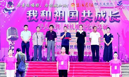 为了庆祝新中国成立70周年,6月16日上午,由生活晨报社、太原市万柏林区委 宣传部、太原市万柏林区文明办、太原市万柏林区千峰街道党工委、太原市万柏林区千峰街道迎泽南社区主 办的“我和祖国共成长——千人共舞,献礼新中国70华诞”主题活动在太原市迎泽西大街2号中国煤炭博物 馆广场举行。