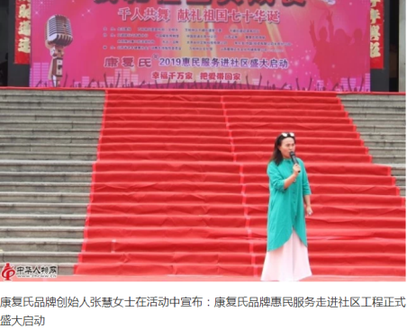 康复氏走进社区惠民工程千人共舞启动仪式。康复氏品牌创始人张慧女士在活动中宣布:康复氏品牌惠民服务走进社区工程正式盛大启动。