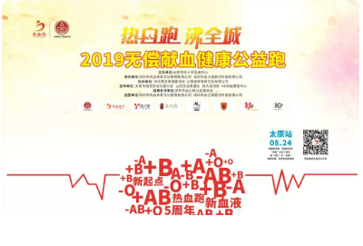 “热血跑·沸全城”2019无偿献血健康公益跑(太原站)活动启动,邀请全市人民积极参与8月24日的太原站无偿献血健康公益跑。