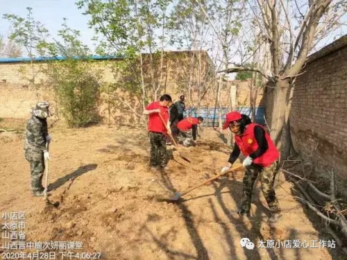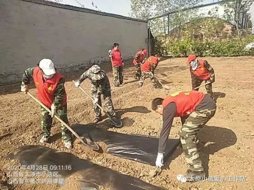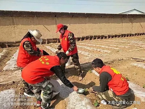 志愿者到了地里马上就拿上劳动的工具,就去地里开始工作,自愿者们用自己勤劳的双手和最珍诚的付出播种者他们无私的大爱,志愿者们拿的铁锹,锄头,有的种菜,有的提水,志愿者干的热火朝天开开心心,一下也没休息,还种上了黄瓜,春菜等等!