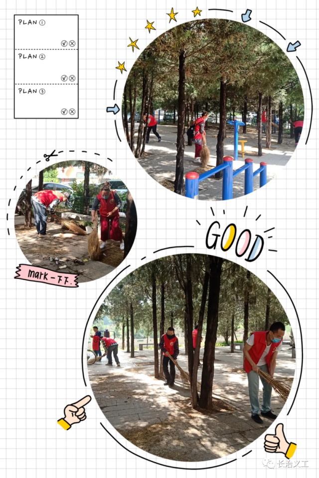 为发扬雷锋精神,学雷锋做好事,践行新时代文明精神,5月31日,长治义工来到雨花斋一部为老人理发,宣传禁毒知识,清扫街心花园的树叶垃圾。