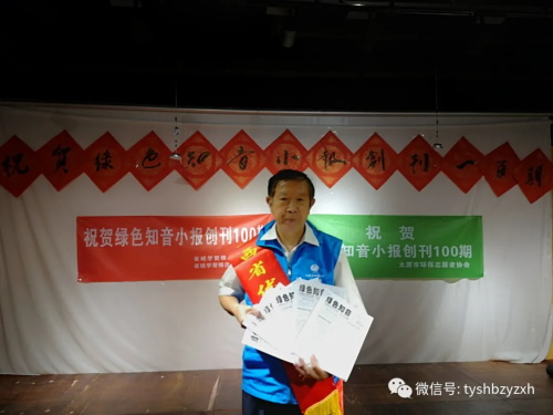 座谈会上张福清不仅写诗祝贺,还说:“薛增琪老师以70多的高龄还坚持在环保公益的战线上实属难能可贵,用十多年时间把《绿色知音》小报办到100期实属难能可贵,几十年如一日坚持不懈的做环保公益实属难能可贵。”